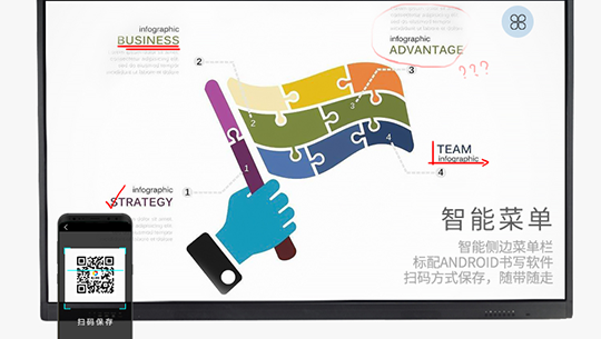 智能菜單,全通道批注、智能側(cè)邊菜單欄,簡單手勢快速調(diào)出,操控便捷、標(biāo)配Android書寫軟件,隨心標(biāo)注郵件、掃碼方式保存,隨帶隨走