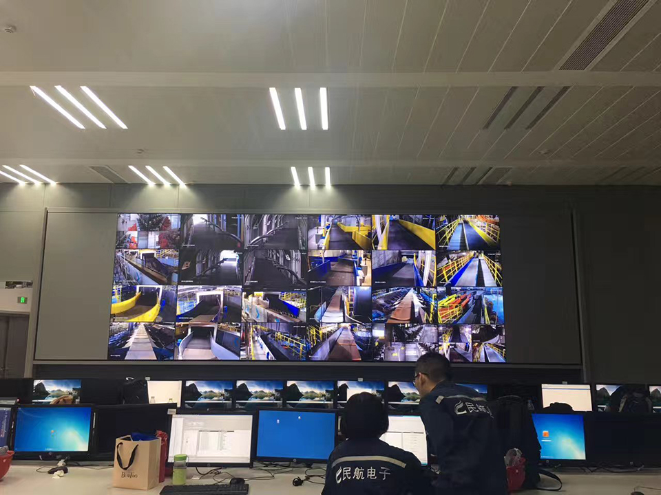 (1)通過接入用戶的CCTV電視監(jiān)控系統(tǒng),全高清大畫面的液晶拼接系統(tǒng)可以全方實(shí)時監(jiān)控行李傳輸區(qū)間的關(guān)鍵節(jié)點(diǎn),做到防范于未然,提高了行李的輸送管理率效及應(yīng)對風(fēng)險的能力。