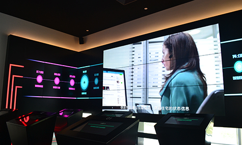 為了滿足客戶強(qiáng)調(diào)的“空間美感”,我們根據(jù)現(xiàn)場條件定制了屏幕的安裝結(jié)構(gòu),可視化顯示系統(tǒng)完美適應(yīng)現(xiàn)場裝修,美感十足!為了滿足客戶強(qiáng)調(diào)的“互動性高”,我們在可視化方案系統(tǒng)中加入了智能感應(yīng)系統(tǒng),參觀者可以在屏幕前做動作,或者直接觸摸顯示屏,或者直接通過控制系統(tǒng),智能感應(yīng)系統(tǒng)將信息傳輸至中央控制系統(tǒng),繼而做出相應(yīng)的回應(yīng)與參觀者互動。