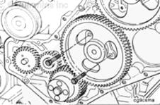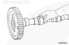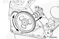 在凸輪軸齒輪與曲軸齒輪嚙合之前,檢查凸輪軸是否容易旋轉(zhuǎn)。如果安裝正確,凸輪軸應(yīng)可以旋轉(zhuǎn)自如。