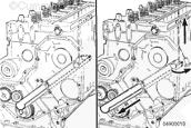 安裝止推墊圈,按圖示對(duì)正正時(shí)標(biāo)記,完成凸輪軸的安裝。