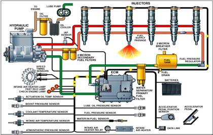 • 1、 ECM電子控制模塊,2、 噴油泵,3、 傳感器,4、 開關(guān),5、 連接線纜
