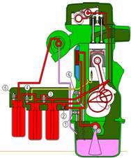 VOLVO沃爾沃柴油機的維修保養基本知識 安全注意事項 VOLVO沃爾沃柴油發動機每日檢查項目 養成在起動發動機之前和停機后直觀檢查發動機的習慣。這有助于你及時發現燃油、潤滑油或冷卻液的泄漏和其它一些已經發生或將要發生的異常情況。 VOLVO沃爾沃柴油發動機一般的常規保養 a) 檢查/更換空氣濾清器 發動機停機后,空氣阻塞指示器如仍滯留紅標時,則應更換空氣濾清器。更換后應按壓阻塞指示器上的按鈕使其指示復位。 注意!空氣阻塞指示器未顯示紅標時,需更換空氣濾清器。被更換的空氣濾清器不能清洗和回用。 重要事項!連續運行時,應該每8小時檢查一次空氣濾清器。 b) 檢查VOLVO沃爾沃柴油發動機進氣管路有無泄漏 檢查進氣管路有無裂縫或其它損壞。如有必要應予更換。檢查所有的軟管夾箍。 c) 調整VOLVO沃爾沃柴油發動機怠速 首先檢查空氣濾清器是否堵塞。檢查當油門機構處于怠速位置時,噴油泵上的油門拉桿(1)是否靠在怠速限位螺釘(2)上。還要檢查當油門控制桿在最大油量位置時,油門拉桿是否壓在最大供油限位螺釘(3)上。如有必要,則進行調整。 警告提示!靠近正在運行的發動機或在其上工作是有危險的。要小那些正在旋轉的零部件和高溫表面。 d) VOLVO沃爾沃柴油發動機RSV調速器 1) 讓發動機在怠速下運行。 2) 如有必要,卸下園項螺帽(1),擰松鎖緊螺母(2),用螺釘(3)調整發動機怠速。 如果發動機空轉轉速不穩,應該按下述方法調整其穩定性。 1) 拆下園頂螺帽(4)并擰松鎖緊螺母(5)。小心地按順時針方向擰動怠速穩定螺(6),直到發動機轉速穩定為止。 2) 檢查最高空轉轉速有否改變,如有改變,則說明怠速穩定螺釘(6)調整過大。 3) 完成調整后,鎖緊怠速穩定螺釘(6),擰上園頂螺帽(4) e) VOLVO沃爾沃柴油發動機RQV,RQ調速器 1) 讓發動機在怠速下運行。 2) 如有必要,用怠速螺釘(1)調整發動機的轉速。 f) 檢查和調整VOLVO沃爾沃柴油發動機傳動皮帶 傳動皮帶的檢查和調整應該在發動機運行后皮帶熱態時進行。 在張緊充電發電機皮帶之前,應先擰松螺栓(A),使皮帶在兩皮帶輪的中點處可被壓下10mm,然后再擰緊螺栓(A)。成對工作的皮帶磨損后應同時更換。 風扇皮帶有自動張緊器,不需要調整。但是必須檢查皮帶的狀況。如有必要,予以更換。 VOLVO沃爾沃柴油發動機潤滑系統 潤滑油的更換周期取決于潤滑油的品質和燃油的硫含量,在40到500小時之間不等。要注意潤滑油的更換周期決不可超過12個月。 如果要求潤滑油的更換周期比下表所列時間更長,則潤滑油的性狀必須由潤滑油制造廠商作定期檢測。 VOLVO沃爾沃柴油發動機潤滑油 注意!只要能滿足上述要求,礦基的、半合成和全合成潤滑油都可以使用。 1)必須使用TBN14-20潤滑油 VDS=Volvo發動機潤滑油規格 ACEA=歐洲汽車制造商協會 API=美國石油學會 VOLVO沃爾沃柴油發動機機油粘度 應根據穩定的外界溫度,按此圖表選擇粘度合適的潤滑油。*指合成或半合成潤滑油。 檢查潤滑油油位 確保油位在MIN(最低)和MAX(最高)標記之間。 重要事項!連續運行時應每隔8小時檢查一次油位。 檢查靜態未運轉發動機的油位時,應查看油標尺上標有“STOP”(停機)的那一面(至少等發動機停止運行3分鐘后)。 警告提示!靠近運行中的發動機或在其上工作是有危險的。要小心那些旋轉著的零部件和灼熱表面。 更換VOLVO沃爾沃柴油發動機潤滑油和潤滑油濾清器 必須遵守推薦的潤滑油更換周期,并必須同時更換潤滑油濾清器。 a) 徹底清潔濾清器安裝座,以免更換濾清器時污物進入發動機。 b) 使發動機運行至正常的工作溫度。 警告提示!高溫潤滑油和灼熱表面會造成燙傷。 c) 拆下底部螺塞,放盡潤滑油。 d) 換用新墊片后裝上底部螺塞。 e) 拆下濾情器 (1)和旁通濾情器(2)。檢查并確保發動機的接合面上無殘留墊片。給新的濾清器加注潤滑油,并在新墊片上薄施一層潤滑油。用手擰緊濾清器直到壓住墊片,然后再擰緊半圈(不要擰得過緊?。?/P>