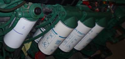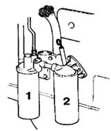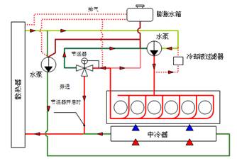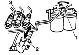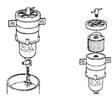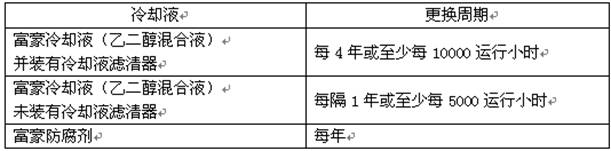 f) 加注潤滑油至正確油位。不得超過MAX(最高)油位。 g) 起動發動機,使其怠速運行。檢查潤滑油油壓是否正常。 h) 關停發動機。檢查濾清器周圍有無潤滑油泄漏。如有必要,添加潤滑油。 將用過的潤滑油及其濾清器按照環保要求處理。 VOLVO沃爾沃柴油發動機冷卻系統 冷卻系統應該使用能夠保護發動機內部免受腐蝕和凍結(如果氣候條件有此要求)的冷卻液。切勿只用普通水作冷卻液。 防腐添加劑的效能會隨時間而下降,因此必須定期更換冷卻液。若能遵循富豪遍達有關冷卻液的各項建議,則可以采用下列更換周期。 重要事項!更換冷卻液時,必須先徹底沖洗冷卻系統,見“沖洗冷卻系統”。更換冷卻液時,毋須同時更換冷卻液濾清器(附件)。但在首次更換冷卻液的6個月后必須更換冷卻液濾清器,此后可每6個月更換一次,見“更換冷卻液濾清器”。 VOLVO沃爾沃柴油發動機冷卻液 重要事項!為了避免發動機和冷卻系統因凍結或腐蝕而造成阻塞或損壞,必須遵守下列建議: 水質 切記必須使用符合ASTMD4985要求的凈水。如果不符合其要求,冷卻系統就有可能阻塞,從而降低冷卻效率。如果水的凈度不符合要求,則必須使用蒸餾水或已配制好的冷卻液。 總顆粒物 <340 ppm 總硬度 <9.5°dH 氯化物 <40 ppm 硫酸鹽 <100 ppm PH值 5.5-9 硅 < 20mg SiO2 perI 鐵 <0.10 ppm 錳 <0.05 ppm 導電率 < 500 uS per cm 有機物含量,CODMn <15 mg kMnO4 perI 檢查并添加冷卻液 警告提示!除遇緊急情況外,當發動機還在高溫時,不要打開冷卻液加液口蓋。蒸汽或高溫冷卻液會噴射出來。 每天起動前應檢查冷卻液液位。必要時添加。冷卻液液面應低于加液口密封面5 cm。裝有單獨的膨脹水箱時,則加注到MIN(最低)和MAX(最高)標記之間。 重要事項!添加的冷卻液應和冷卻系統內原有的冷卻液相同。 給已放空的冷卻系統灌充冷卻液 先檢查并確保所有的放水閥均已關閉。 放水閥和放氣閥的位置見下再示意圖 灌充冷卻液時,必須關停發動機,然后緩慢加入,以使空氣能夠通過放氣閥和加液口排出。 如果發動機冷卻系統中裝有加熱器,則必須打開加熱器的控制閥,以使加熱器在灌充時排氣。 灌充冷卻液應達到規定的液位。在排盡冷卻系統內的空氣和完全加滿冷卻液之前,切勿起動發動機。 起動發動機并運行至節溫器開啟(這大約需要20分鐘)。發動機起動后,短暫地打開所有放氣閥,排出滯留的空氣。檢查冷卻液液位,如有必要,則添加。 放空VOLVO沃爾沃柴油發動機的冷卻液 在放出冷卻液之前,必須關停發動機并打開加液口蓋。 沖洗VOLVO沃爾沃柴油發動機冷卻系統 散熱器和冷卻液通道內的沉積物會降低發動機的冷卻效能。因此,更換冷卻液時必須沖洗冷卻系統。 a) 按前述放盡冷卻液。 b) 在開啟的加液口中插入一根軟管,用清水沖洗,直到流出的水完全潔凈時為止。 c) 關閉放水閥和放水塔塞。按照“檢查和添加冷卻液”一節中的說明加入新的冷卻液。 清洗空冷式中冷器外部(TAD增壓空氣冷卻器) 拆去散熱器的護罩,用清水和中性洗滌劑清洗冷卻器??捎密浢⑺⑾矗⌒牟灰獡p壞散熱器片。重新裝好各零部件。 重要事項!不可用高壓水槍沖洗。 更換冷卻液濾清器 它具有過濾冷卻液和防腐保護作用。 重要事項!為防止過強的防腐保護而導致淤塞,在更換冷卻液時不應同時更換冷卻液濾清器,而應在首次更換冷卻液的6個月后更換,以后可每6個月更換一次濾清器。 關閉閥(1)。用合適的工具拆下濾清器。在密封墊上均勻涂沫少許潤滑油并用手擰上新濾清器。當密封墊開始被壓緊時,再擰緊 1/2圈。打開閥( 1)。 VOLVO沃爾沃柴油發動機燃油噴射系統 只能使用符合下列標準所推薦的品質的燃油。加油時和對燃油噴射系統進行工作時,務必始終保持其高度的清潔。 所有涉及發動機噴油泵或噴油器的工作,都必須由經過授權的維修廠進行。如果噴油泵上的鉛封已被打開,則所有的擔保均即無效。 警告提示!注意防火。必須要在發動機冷卻后,才能對其燃油系統進行工作。燃油濺到灼熱的表面或電路器件上可能引發火災。存放吸有燃油的擦布要注意安全防火。 更換VOLVO沃爾沃柴油發動機燃油濾清器 保持清潔!不得讓任何塵埃或污物進入燃油系統。 警告提示!更換燃油濾清器應在冷機狀態下進行,以避免燃油濺到灼熱表面而引起著火。 拆下濾清器。在新的濾清器墊片上涂少許潤滑油。用手擰上濾清器使其壓住墊片,然后再擰緊半圈。不要擰得過緊。排出燃油系統中的空氣。將舊的濾清器按環保要求進行處理。起動發動機,檢查有無泄漏。 VOLVO沃爾沃柴油發動機燃油粗濾器,油水分離器 燃油粗濾器是選購件。將一個容器放在燃油濾清器下面,然后打開濾清器底部的閥門/旋塞放出積水和污物。 重要事項!放出濾清器中的積水要在停機數小時后進行。 VOLVO沃爾沃柴油發動機燃油系統的排氣 在更換濾清器或當油箱用空燃油再重新加油后,必須對燃油系統排氣。 裝有停機電磁閥/停機通電型斷油閥的發動機燃油系統的排氣: 確保發動機處于工作狀態。打開放氣螺釘(1),用手動輸油泵(2)泵油,直到流出的燃油中沒有空氣,并在燃油繼續流出的情況下擰緊螺釘。繼續泵油15-20次,檢查泄漏。 注意!對裝有斷油閥的發動機,噴油泵也需要經常排氣。這可由擰松噴油泵壓力均衡器(3)(用薄形27 mm開口扳手)來實現。用手動輸油泵泵油直到流出的燃油中沒有空氣時